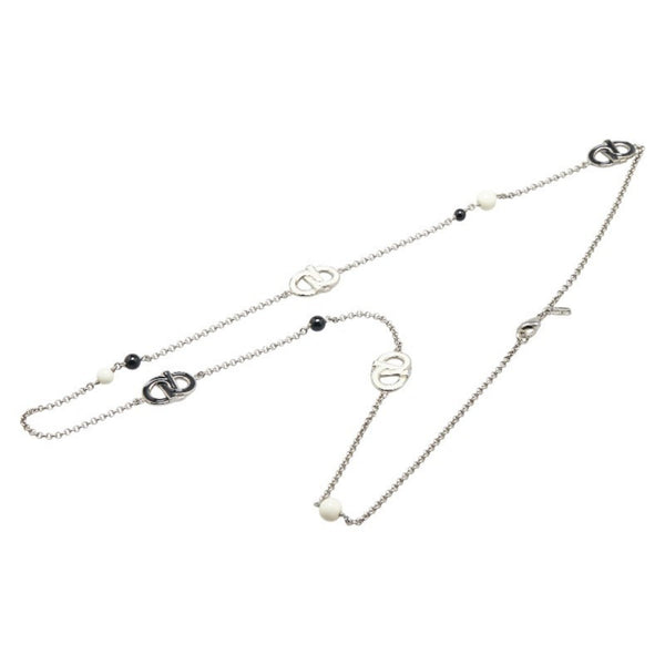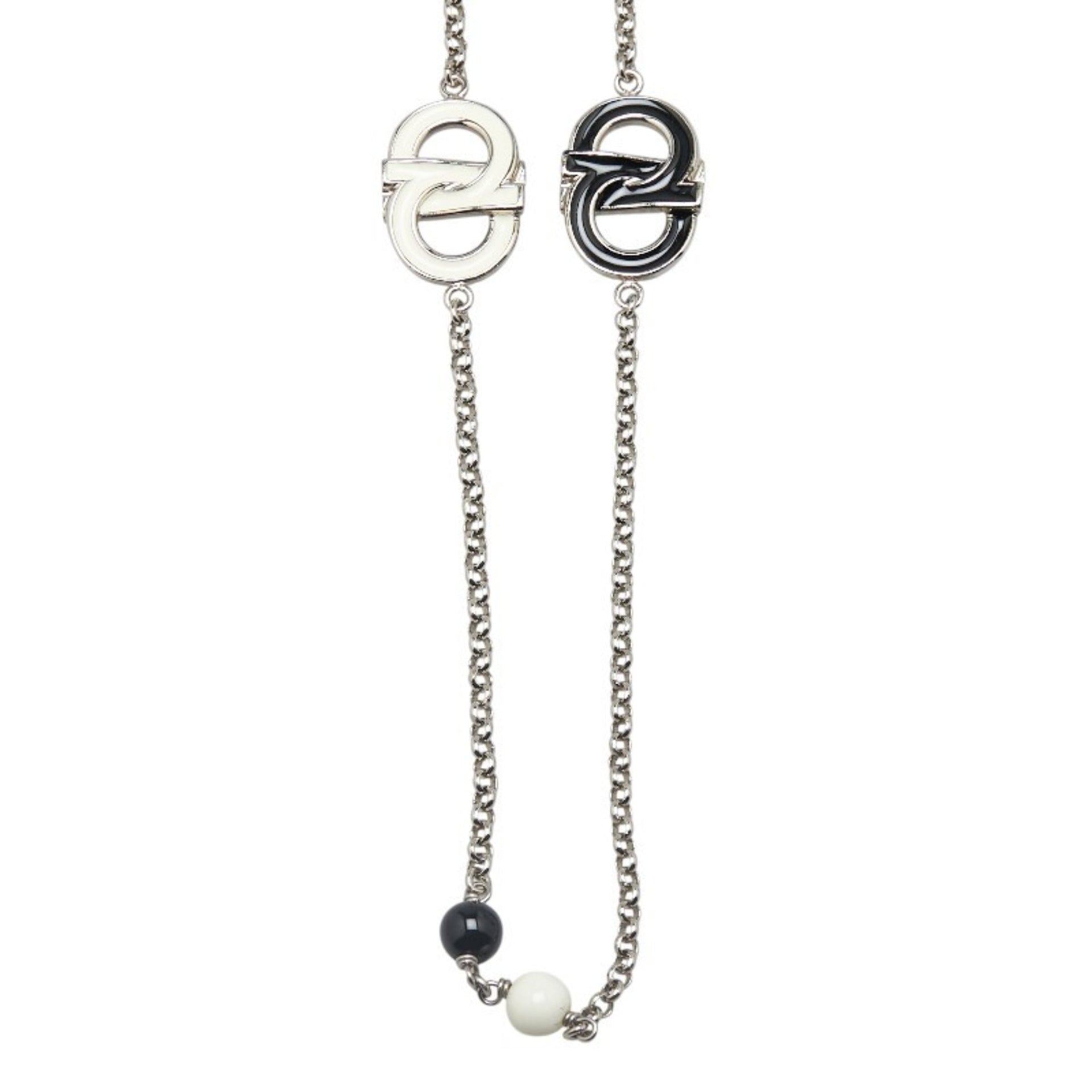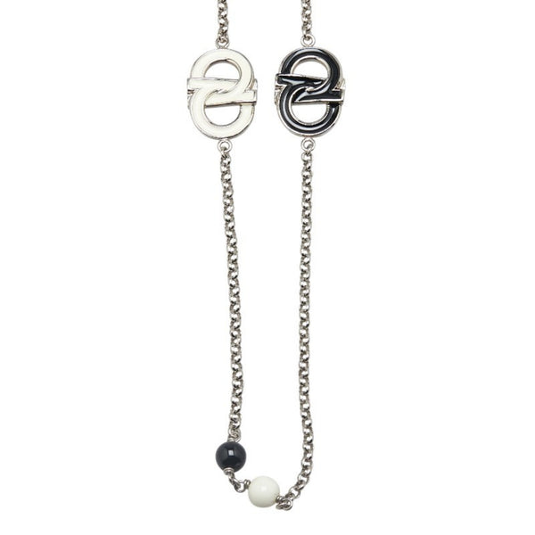 Salvatore Ferragamo Gancini long necklace in silver, black, and white metal for women.
