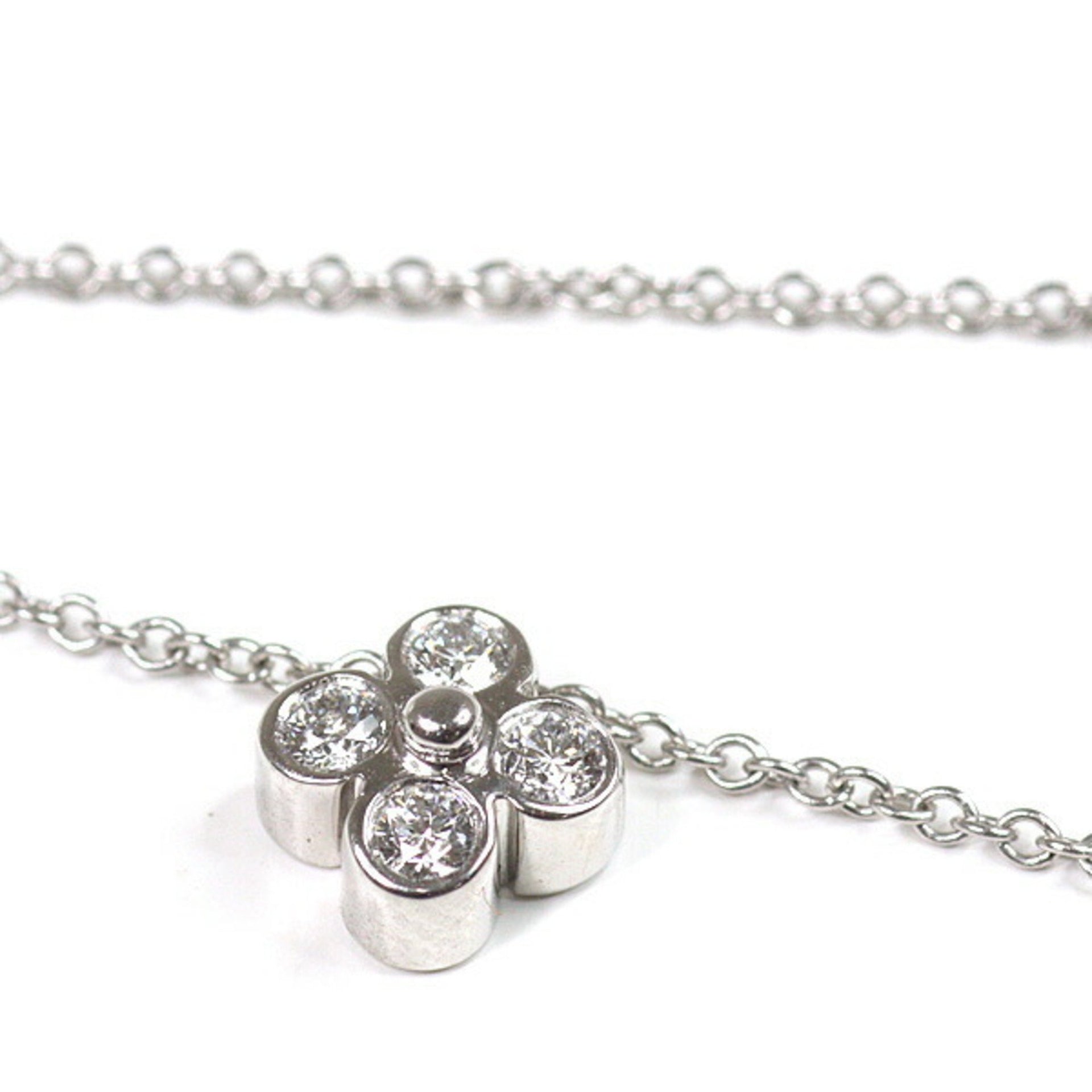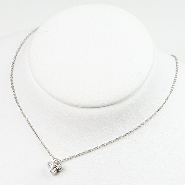 Tiffany Bezel Set Diamond Flower Pendant Platinum PT950 41cm Necklace