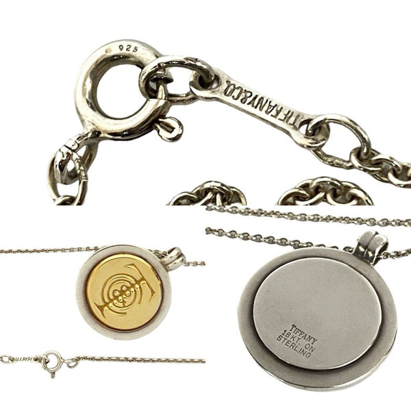 TIFFANY & Co. Tiffany Coin Necklace with Old Logo Engraved, 925 Sterling Silver and 18K Gold Chain Pendant Choker 31200