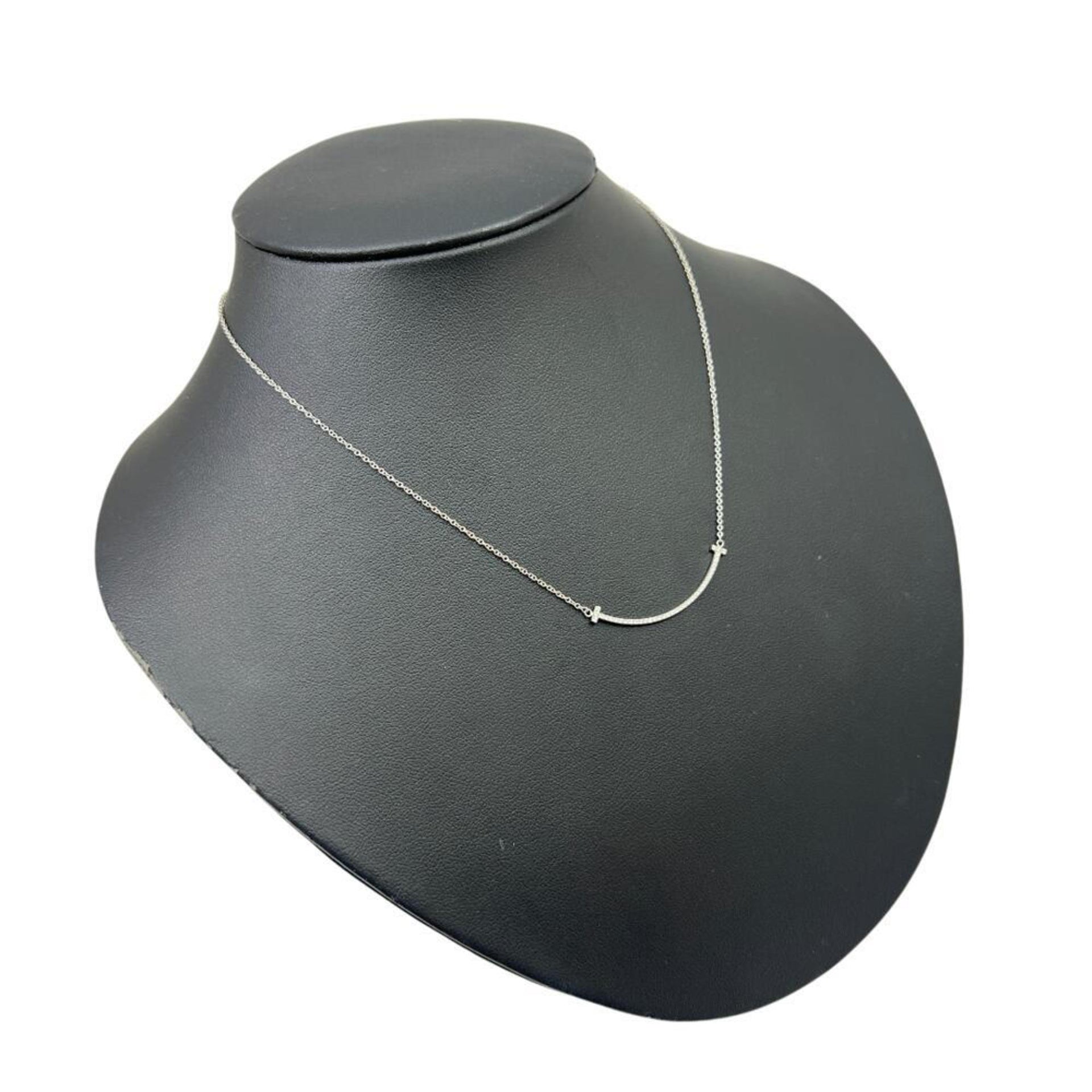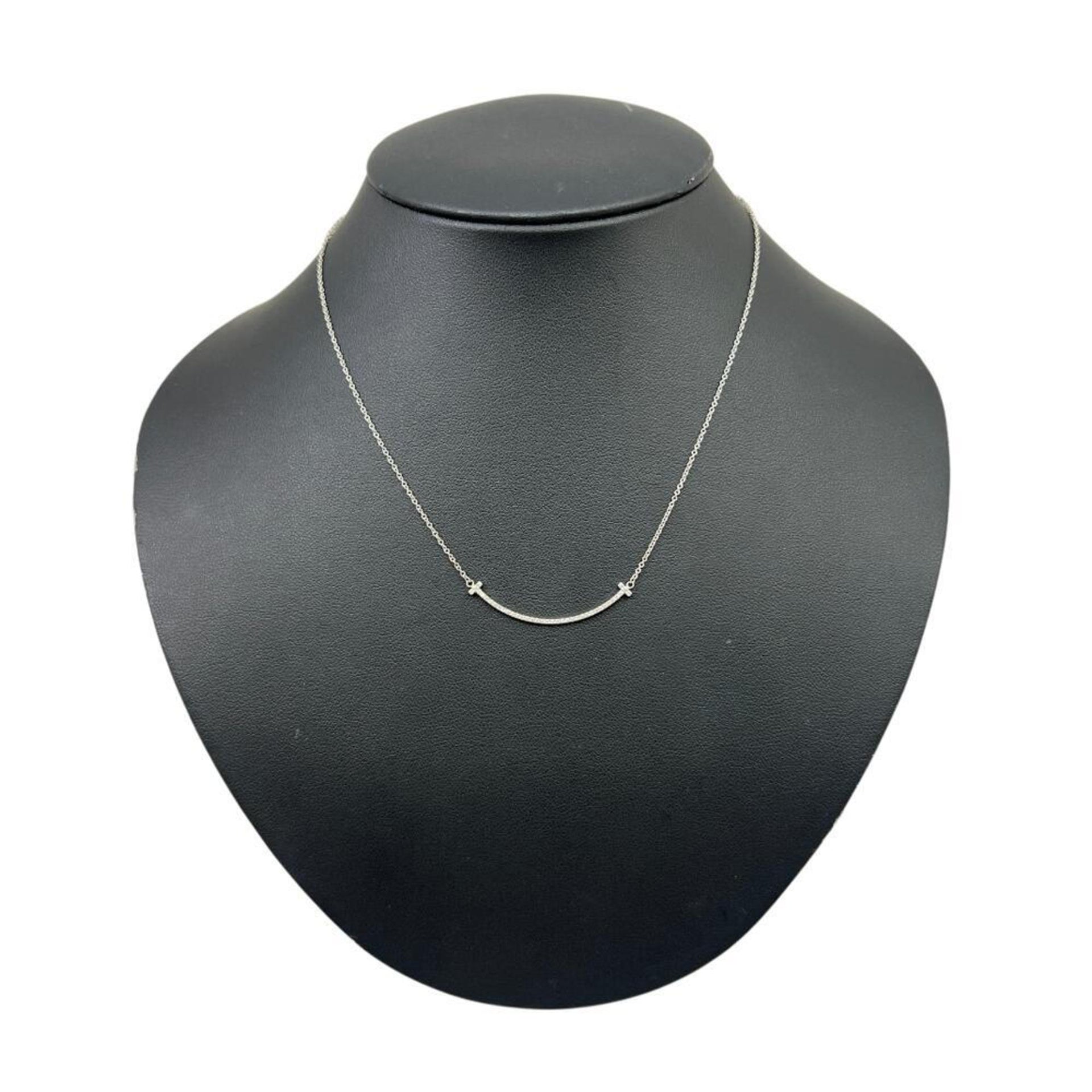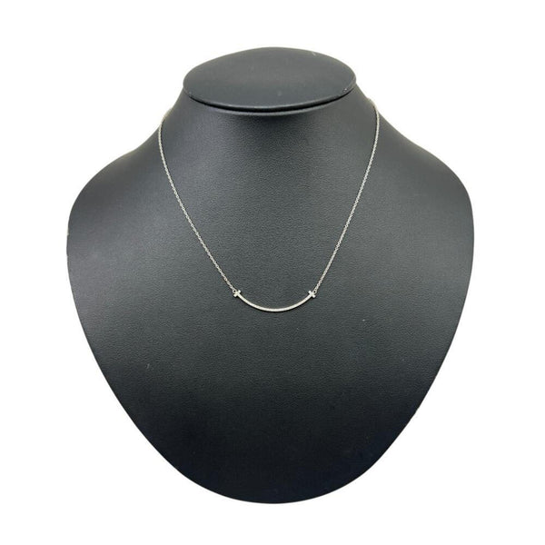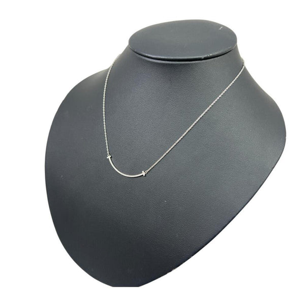 TIFFANY & Co. Tiffany T Smile Small Pendant 18KWG Diamond Necklace 750 Women\'s