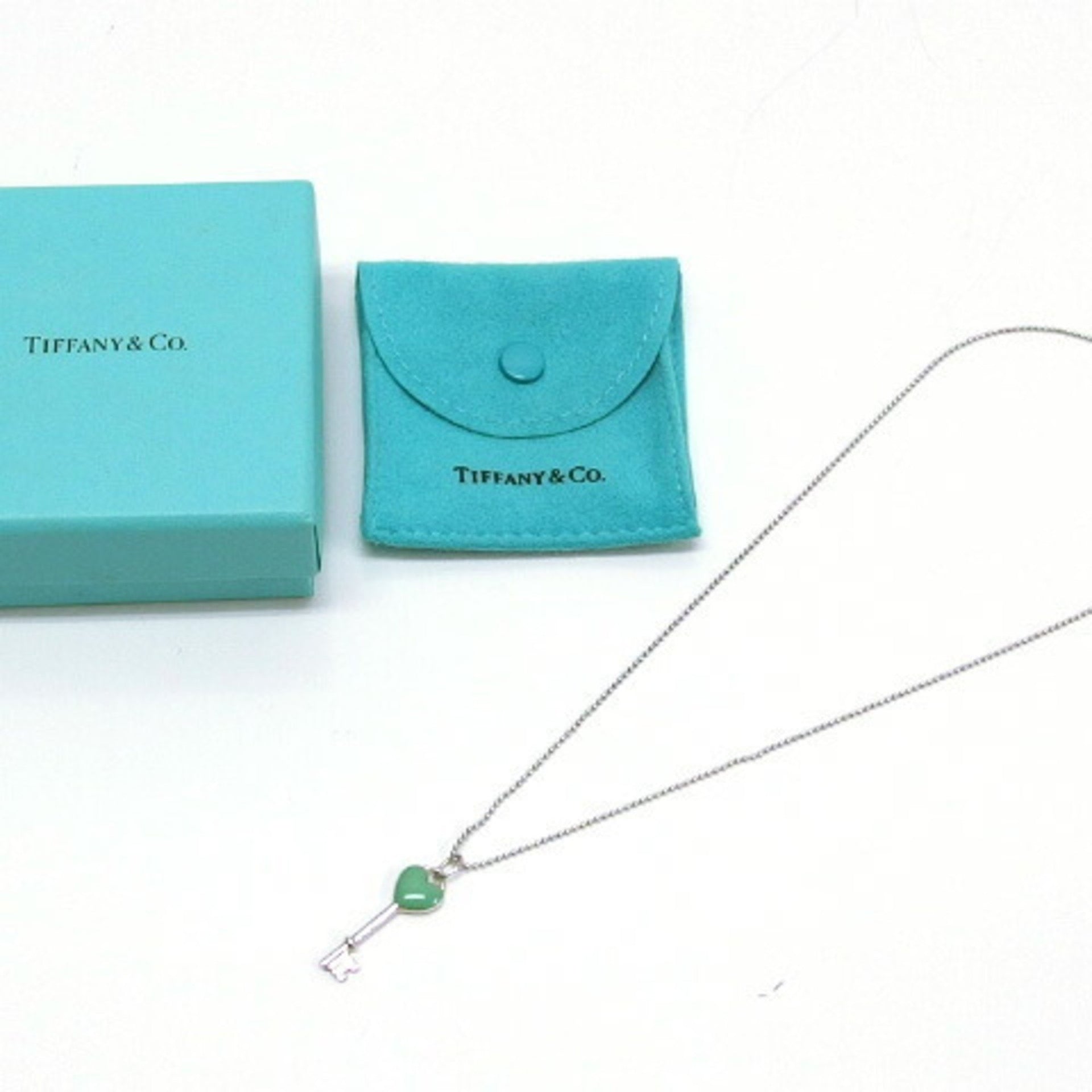 Tiffany heart key motif ball chain silver necklace