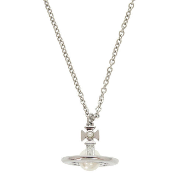 Unused Vivienne Westwood Orb Metal Faux Pearl Silver Necklace 1438