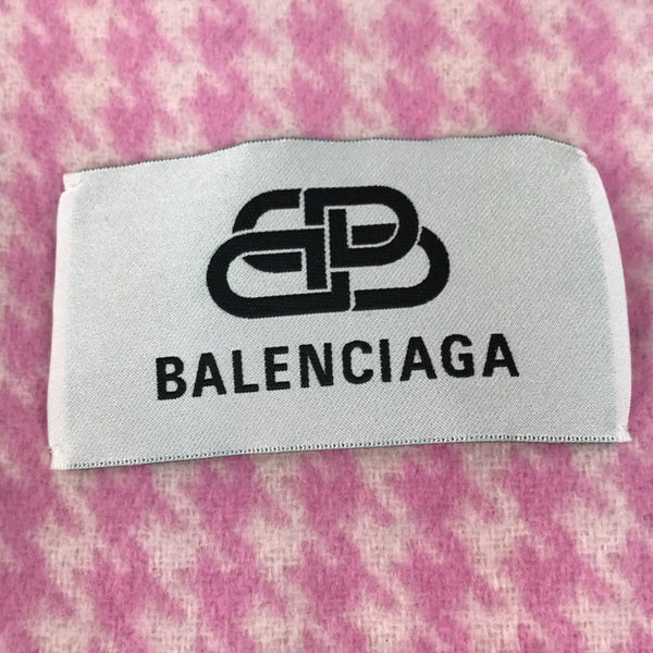 BALENCIAGA Check Logo Fringe Scarf Wool/Cashmere Women\'s Pink