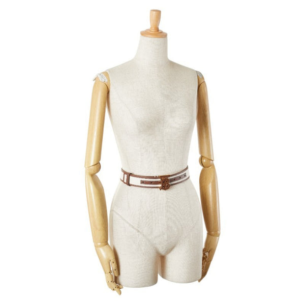 Burberry TB Logo Belt, Size L, White/Brown Canvas/Leather, Women\'s, BURBERRY