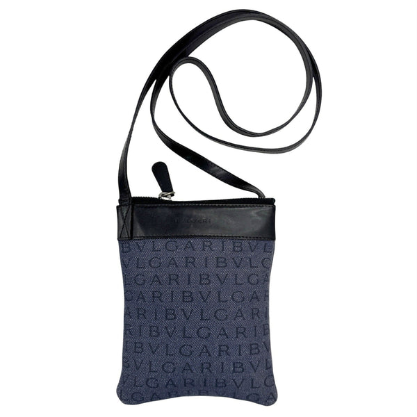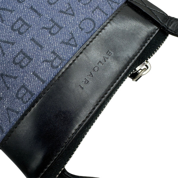 BVLGARI Bvlgari Mania Pochette Pouch Shoulder Bag Canvas Leather Blue Women\'s
