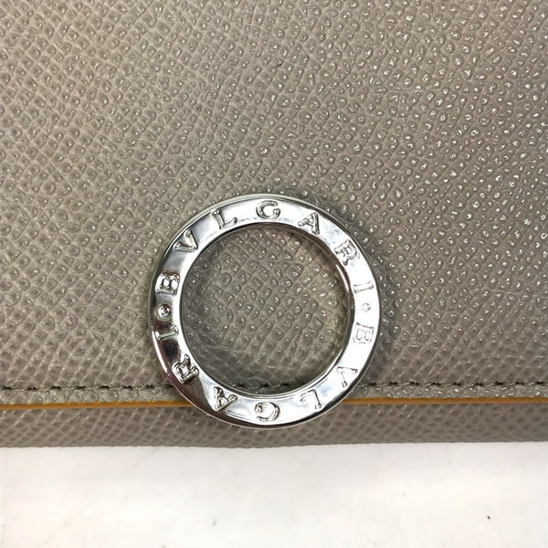 BVLGARI Logo Clip Bifold Wallet Leather Women\'s Gray x Yellow