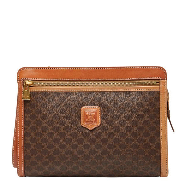 Celine Macadam Clutch Bag Brown Leather Women\'s CELINE