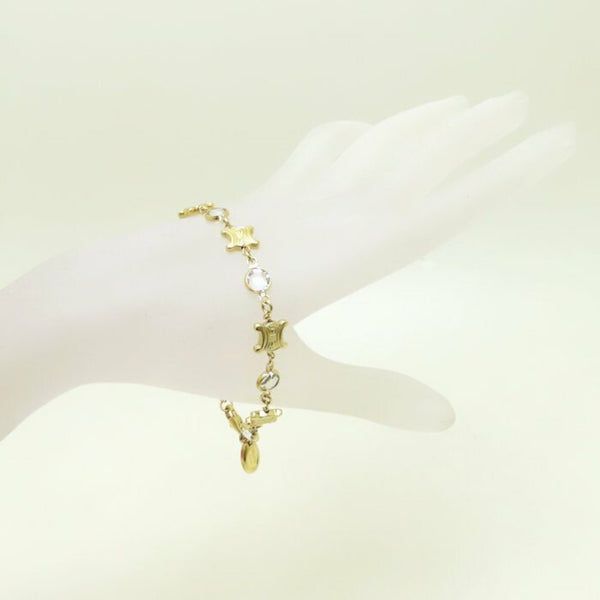 CELINE Triomphe motif bracelet with rhinestones, GP, gold plated, 293966