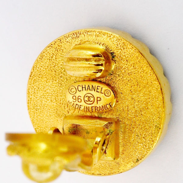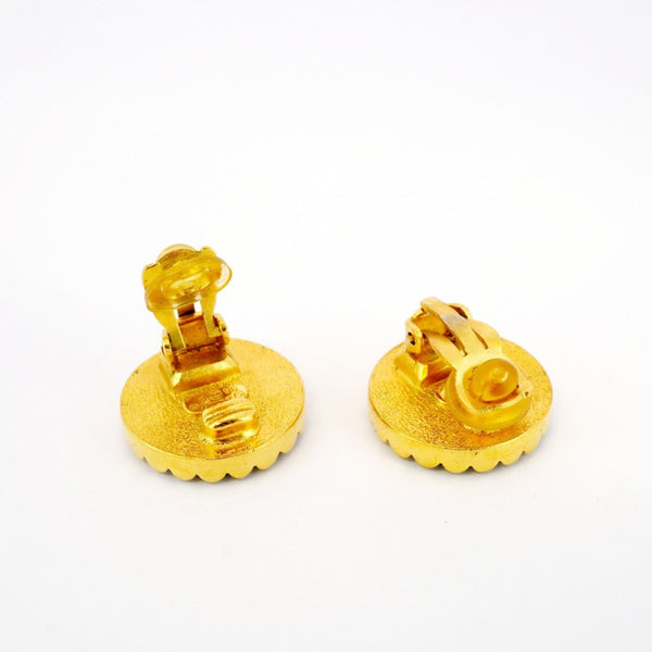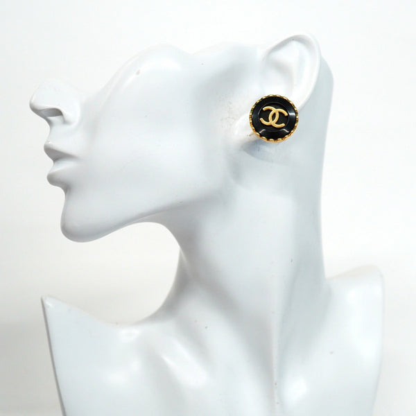 Chanel Coco Mark Circle Earrings, GP Plated Gold and Black, Women\'s