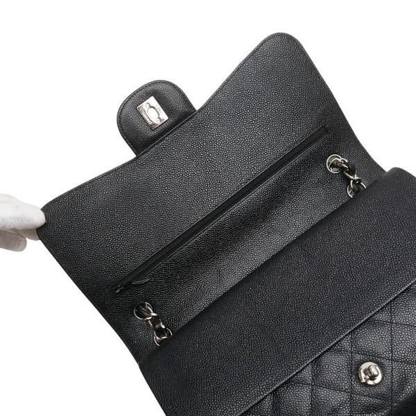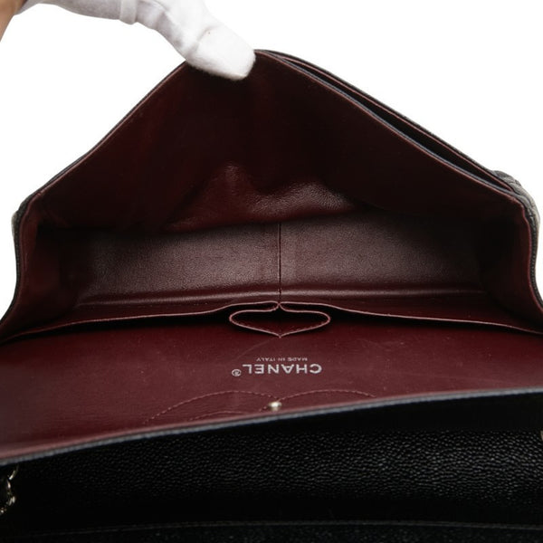 CHANEL Coco Mark Matelasse 30 Double Flap Chain Shoulder Bag in Black Caviar Skin for Women
