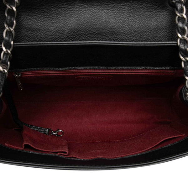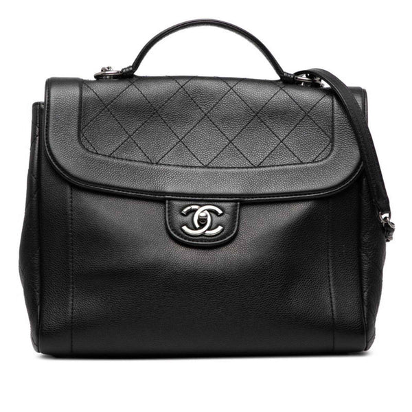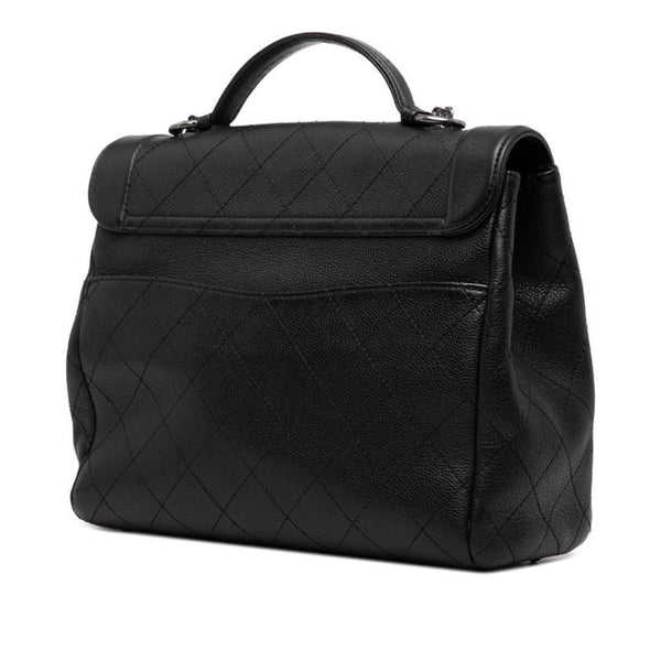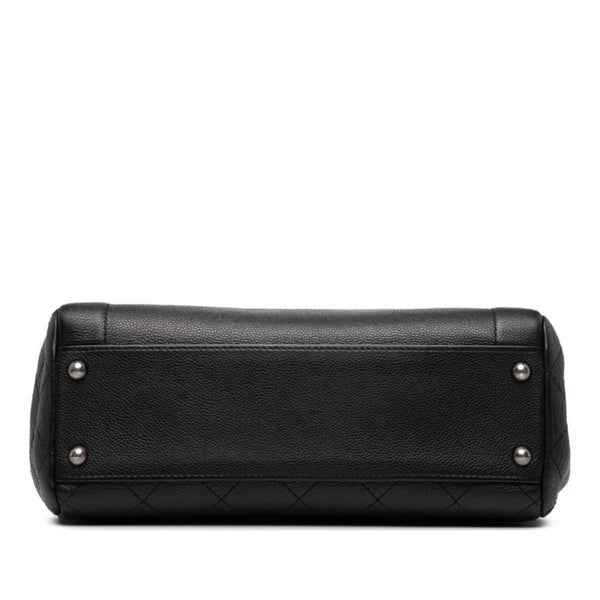 CHANEL Coco Mark Matelasse Top Handle Chain Shoulder Bag 2-Way Black Caviar Skin Women\'s
