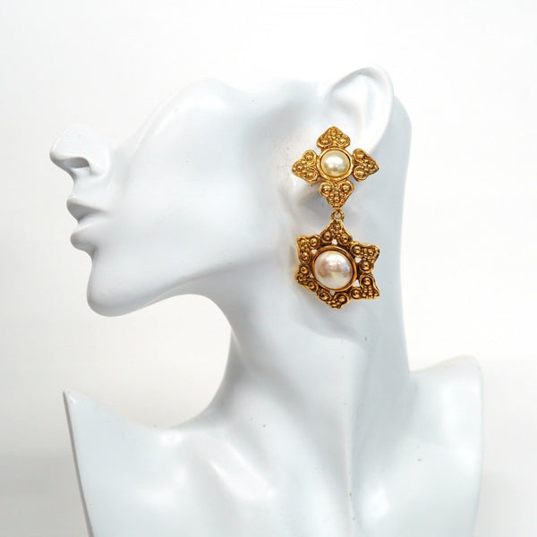 Chanel Earrings, GP Plated, Faux Pearl, Gold, Women\'s