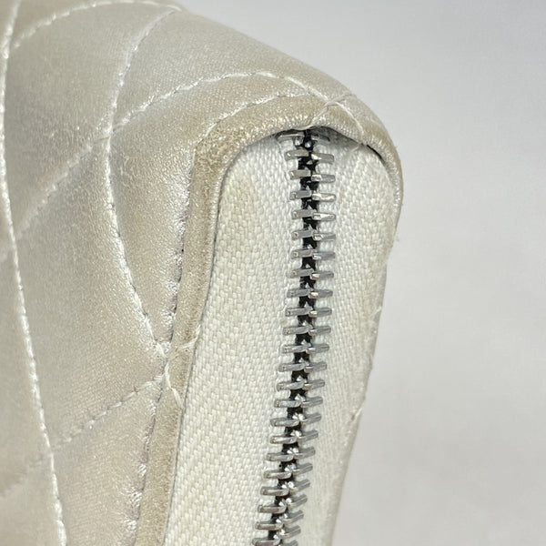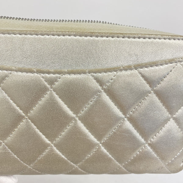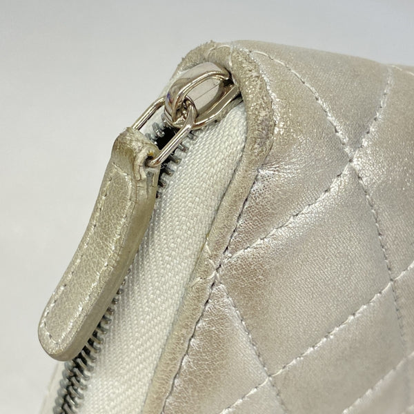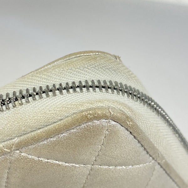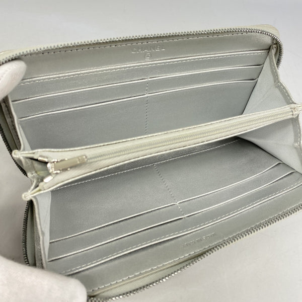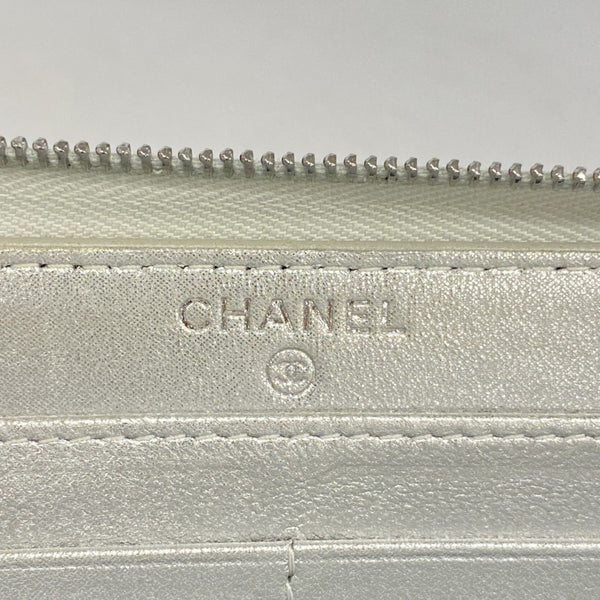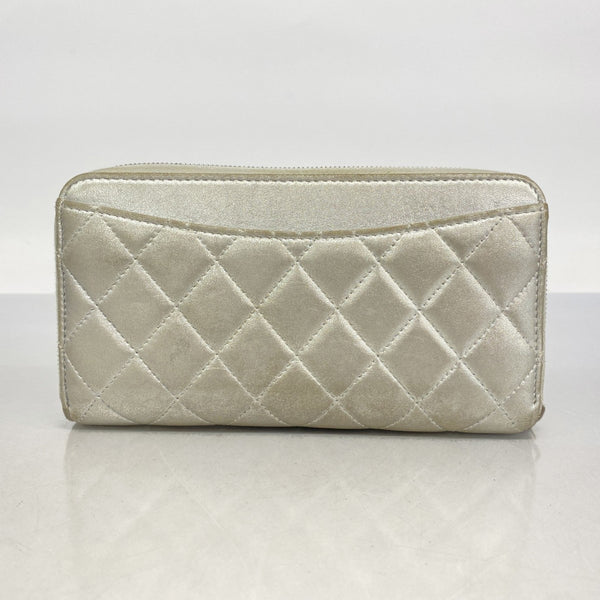 Chanel Matelasse Long Wallet, Lambskin, Silver, Women\'s