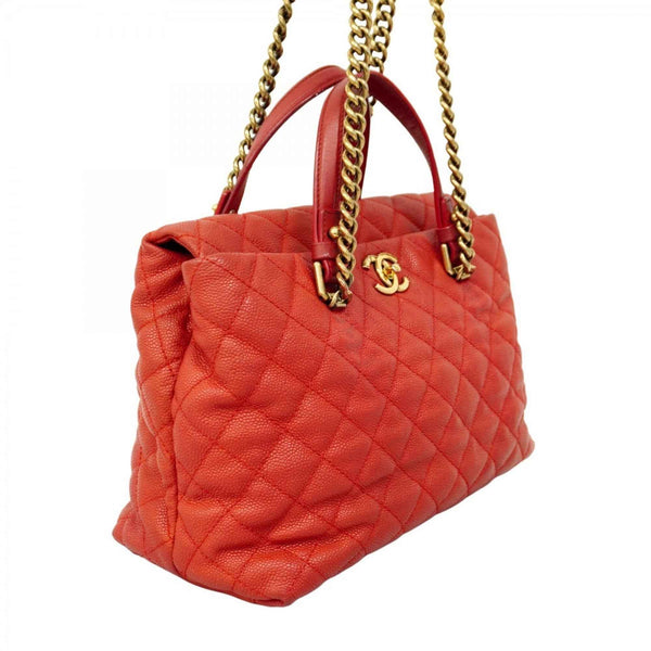 Chanel Matelasse Portobello Chain Handbag in Caviar Leather, Red, 2-Way Bag for Women, P1428421