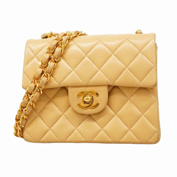 Chanel Mini Matelasse Shoulder Bag with Chain Bag, Lambskin, Beige, Women\'s