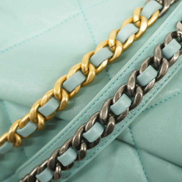 Chanel Shoulder Bag Chain 19 Lambskin Mint Blue Gold Women\'s