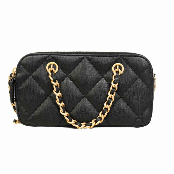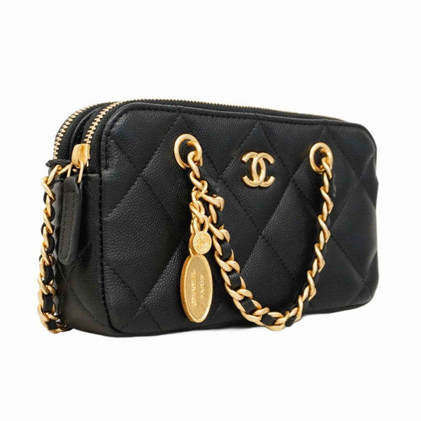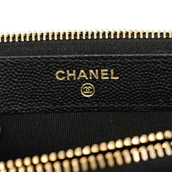 Chanel Shoulder Wallet Chain Matelasse Caviar Skin Black Women\'s