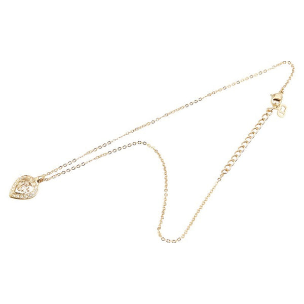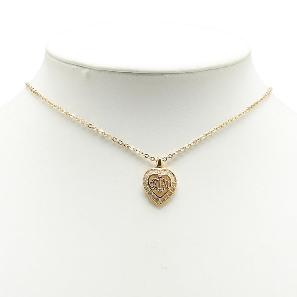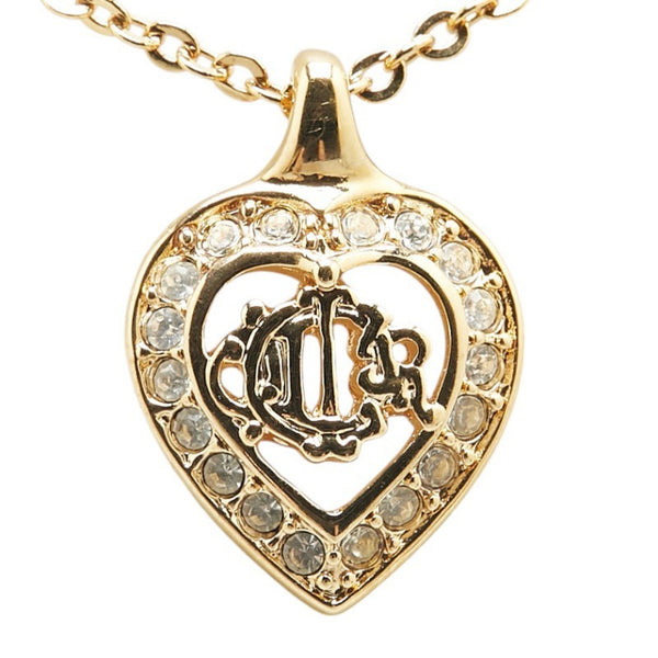 Christian Dior Dior Emblem Logo Heart Rhinestone Motif Necklace Gold Plated Women\'s