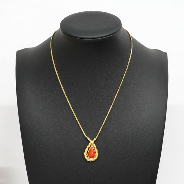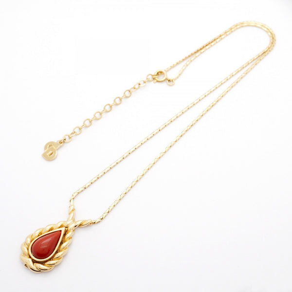 Christian Dior Drop Motif Necklace, GP Plated Gold, Red, Women\'s
