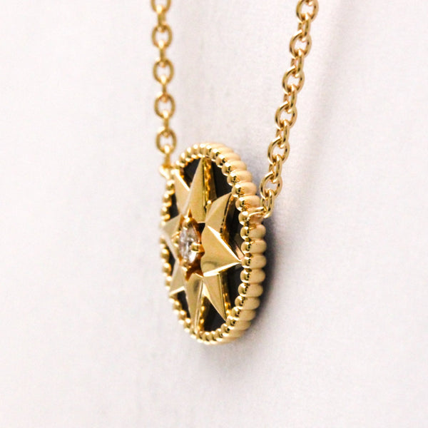 Christian Dior Rose Des Vents Necklace With Onyx Pink Gold (18K) Onyx Women,Men Fashion Pendant Necklace (Pink Gold)