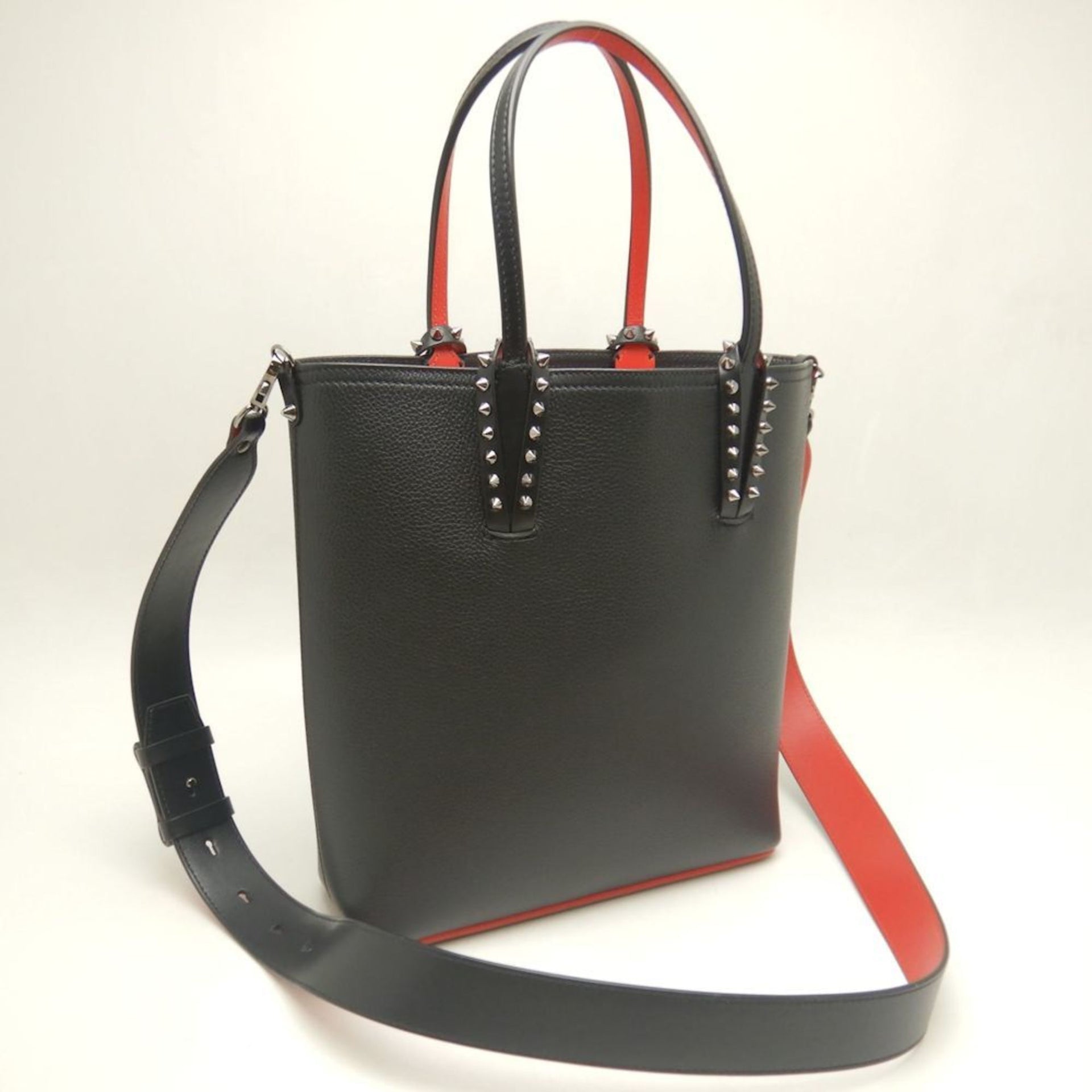 Christian Louboutin Kabata N S (1205055) Tote Bag with Spiked Studs, Black and Red Leather, 252974