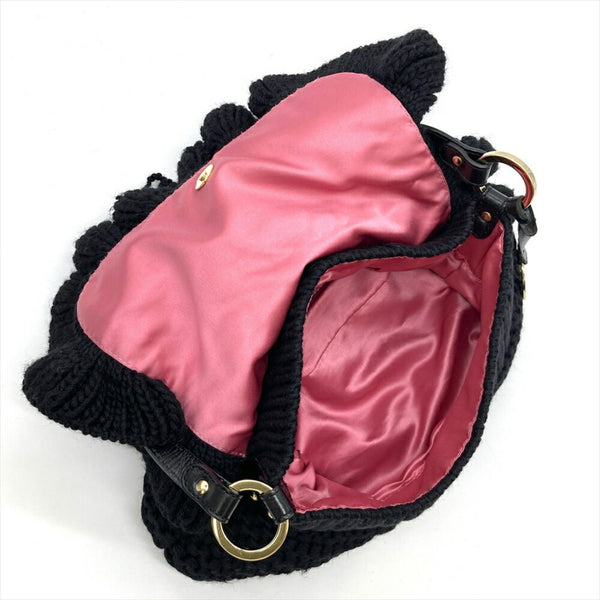 Fendi FENDI Handbag Wool Leather 8BR445 Black Women\'s