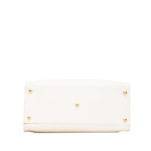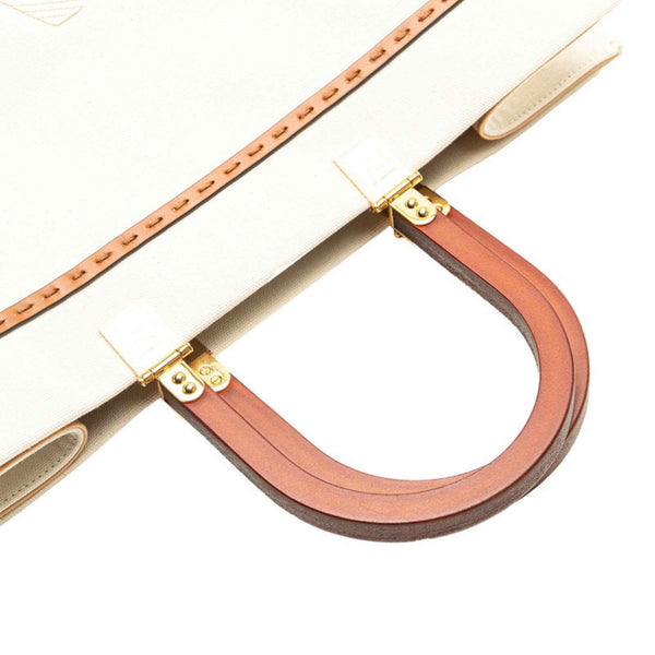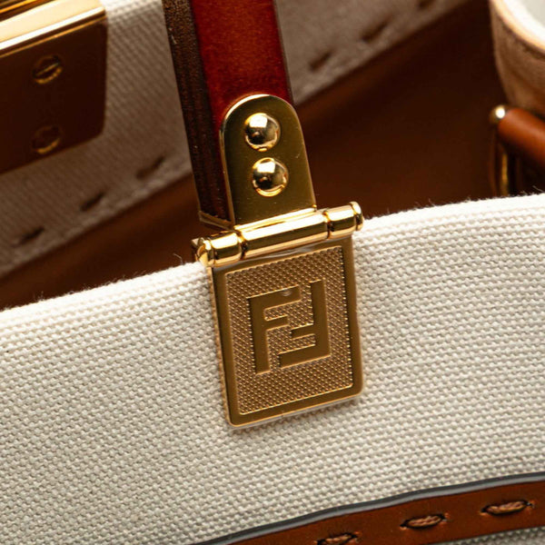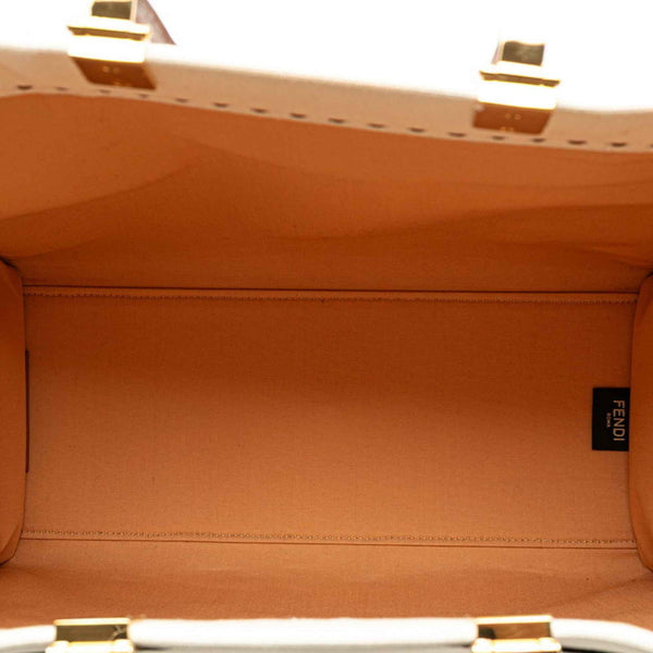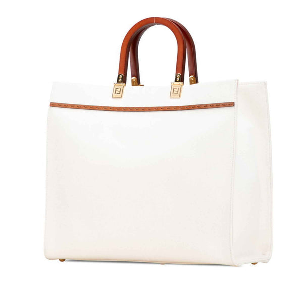 Fendi Sunshine Medium Handbag/Shoulder Bag 2WAY 8BH386 White, Beige, Brown Canvas, Wood, Leather Women\'s FENDI