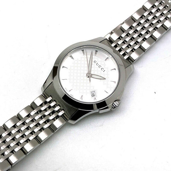 GUCCI G Timeless Quartz 126.5 Stainless Steel Battery-Operated Women\'s Watch with Date Display, 3 Hands, Silver, Mikunigaoka Store, ITT5QU506048 RM0186T