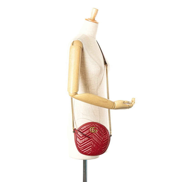Gucci GG Marmont Heart Round Crossbody Chain Shoulder Bag 550154 Red Leather Women\'s GUCCI