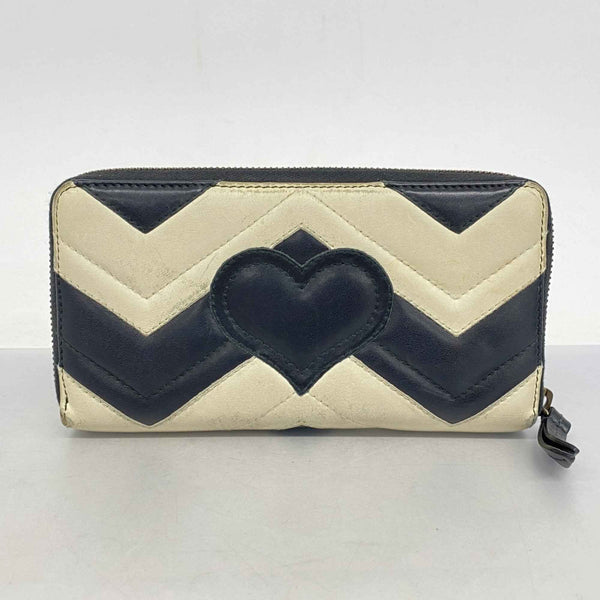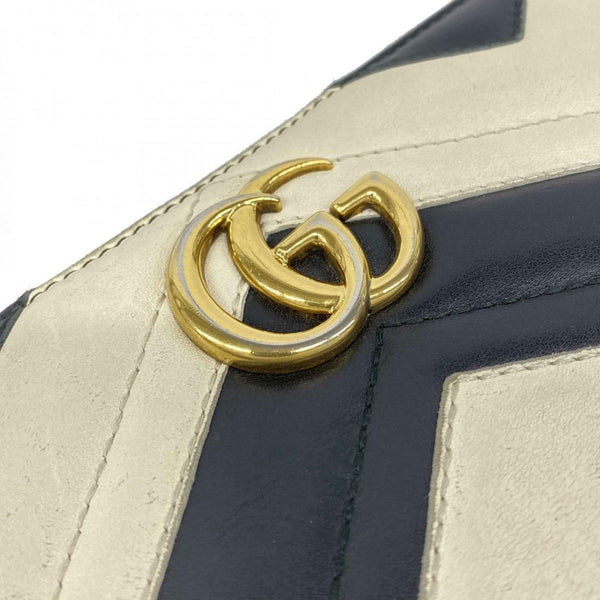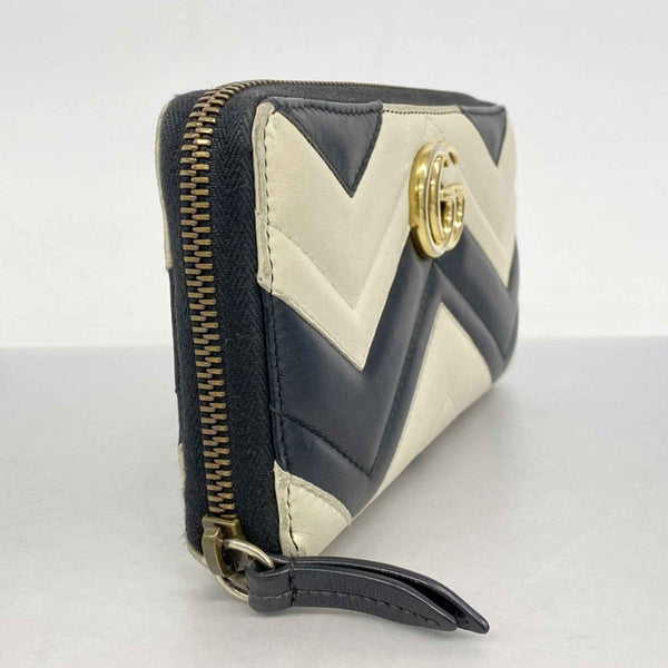 Gucci GG Marmont Long Wallet 443123 Leather Black Beige Women\'s