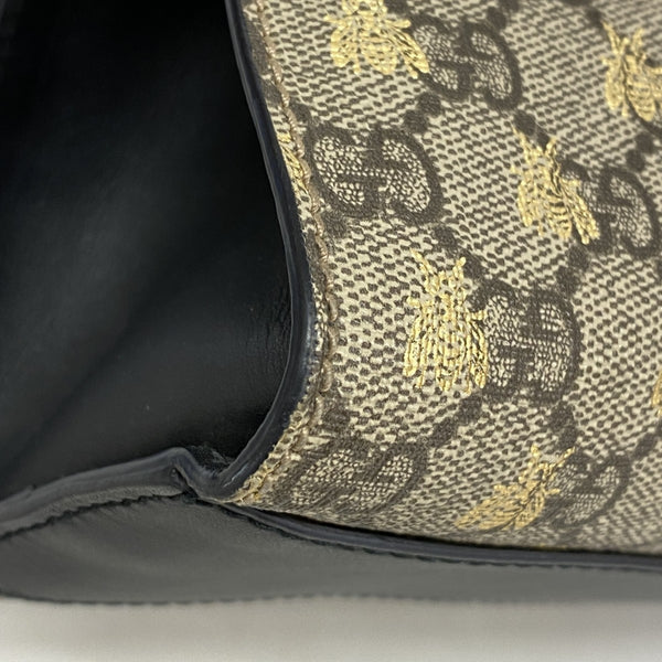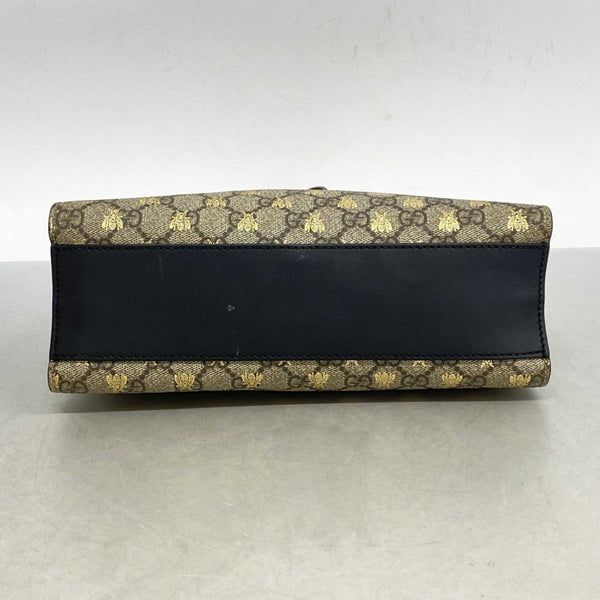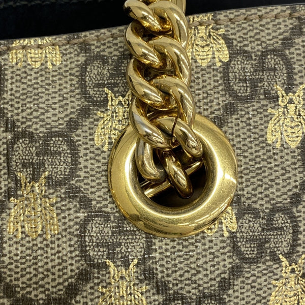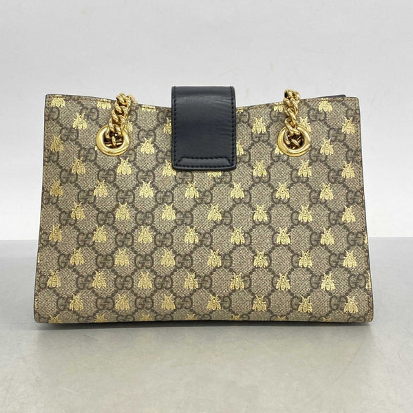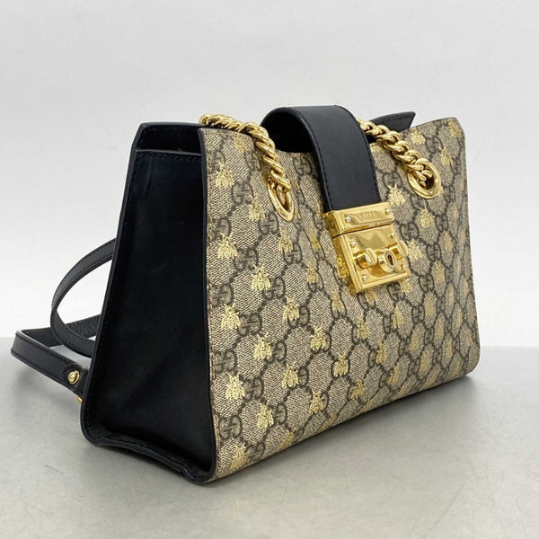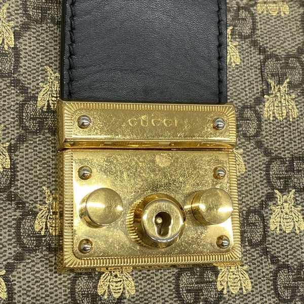 Gucci GG Supreme Padlock Bee Shoulder Bag 498156 Brown Black Women\'s