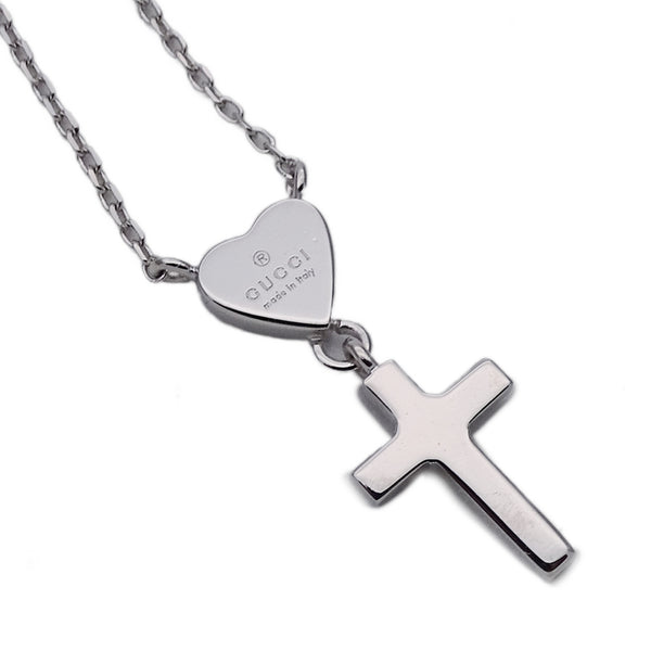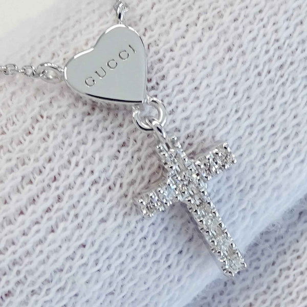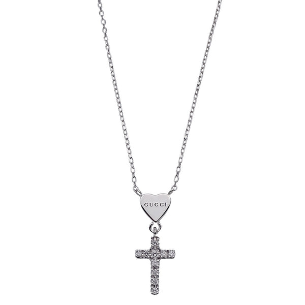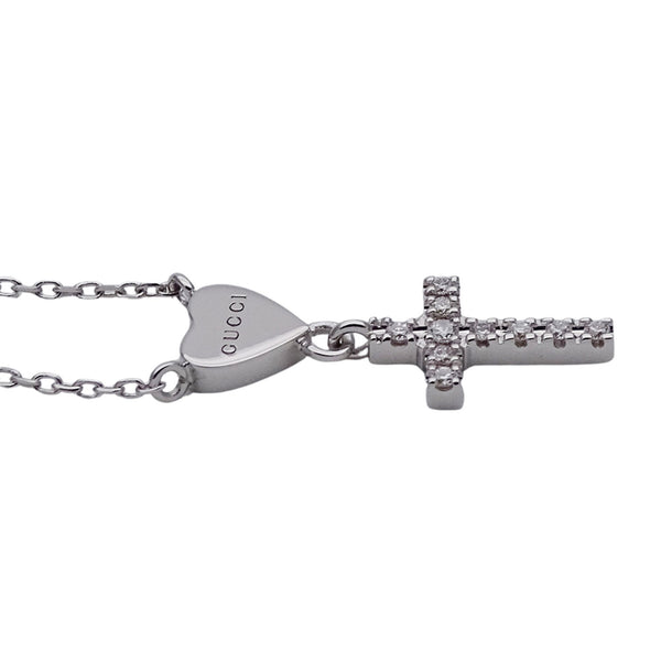 Gucci Women\'s Cross Necklace, 750WG Diamond and Heart, White Gold, Polished