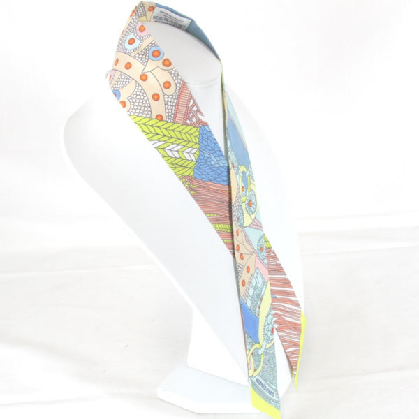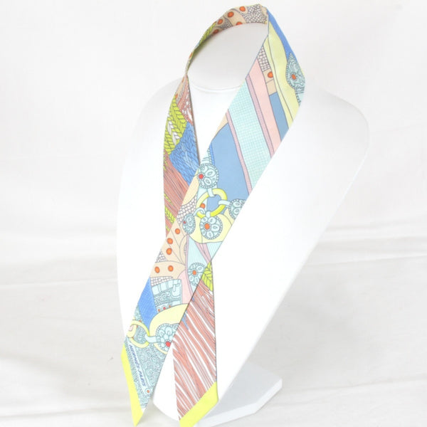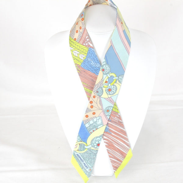 HERMES Twilly Dignitary\'s Saddle Silk Scarf Muffler Yellow Base Multicolor Women\'s Classic Pattern