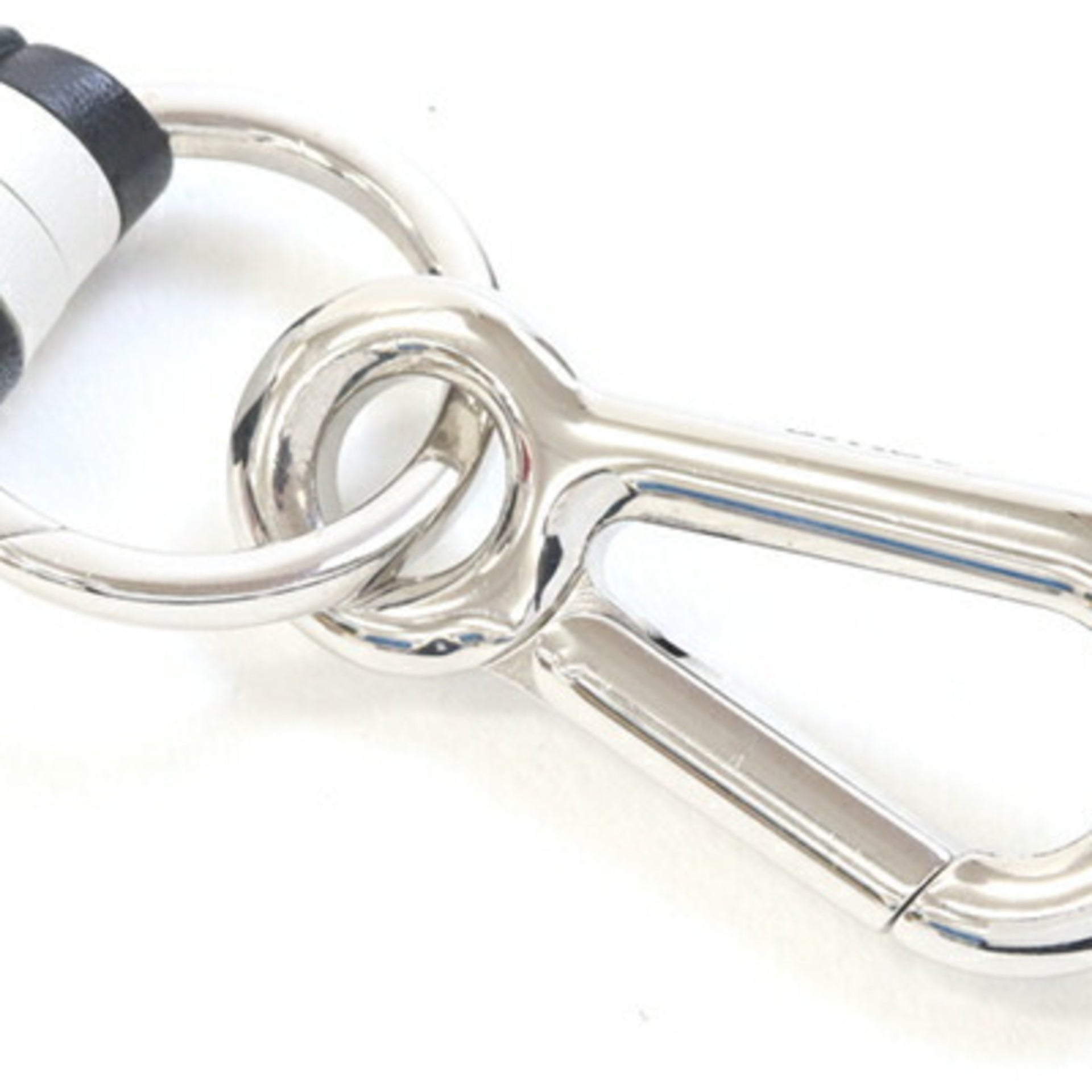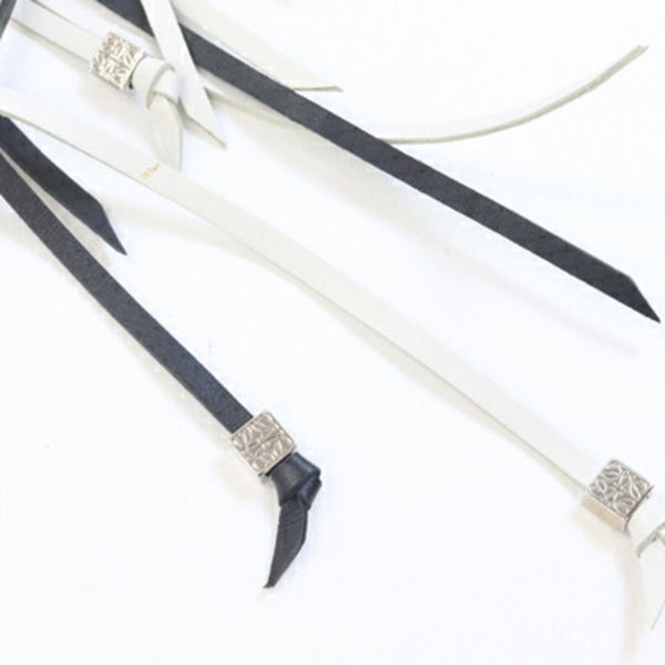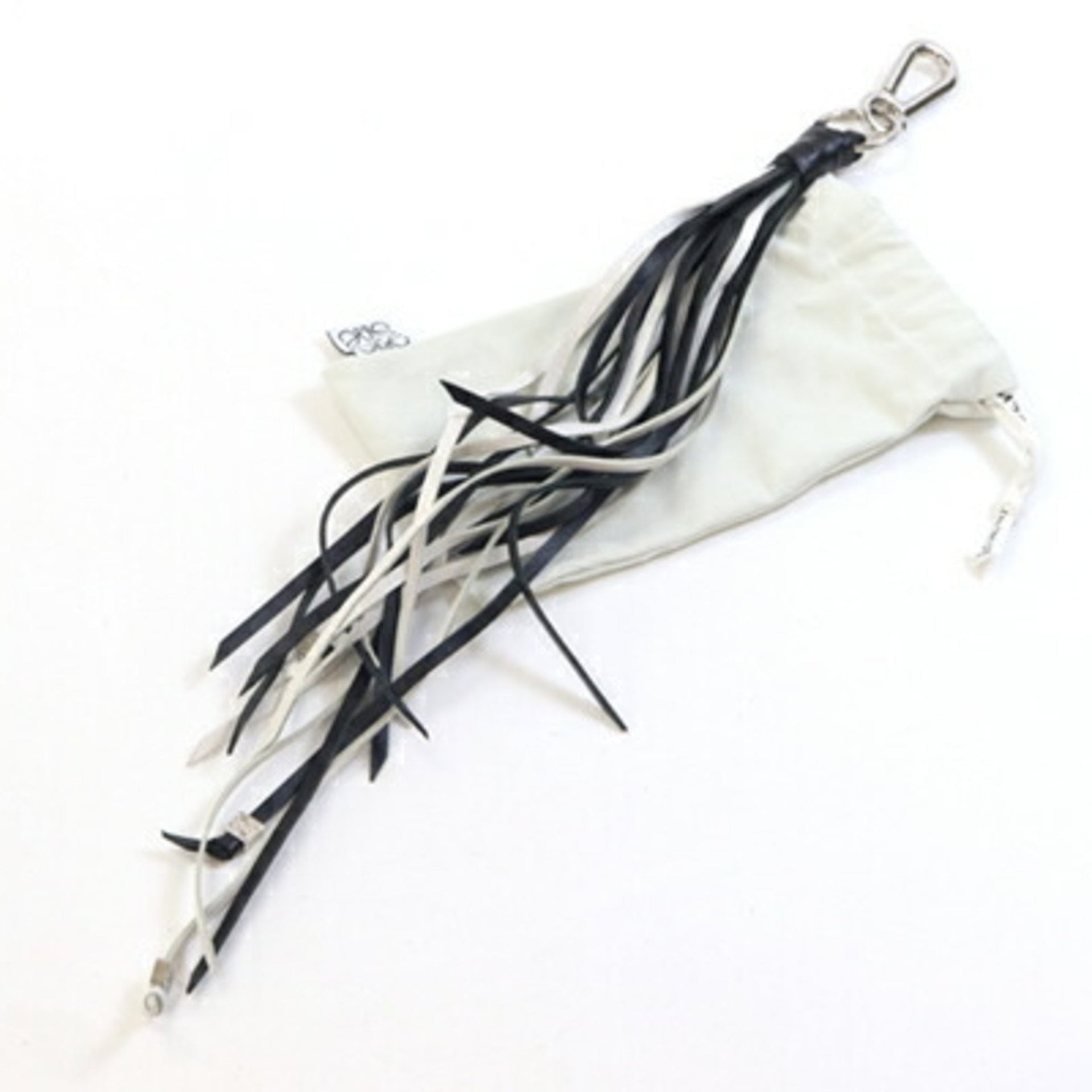 LOEWE Bag Charm Black White Leather Key Holder Ring Tassel Women\'s