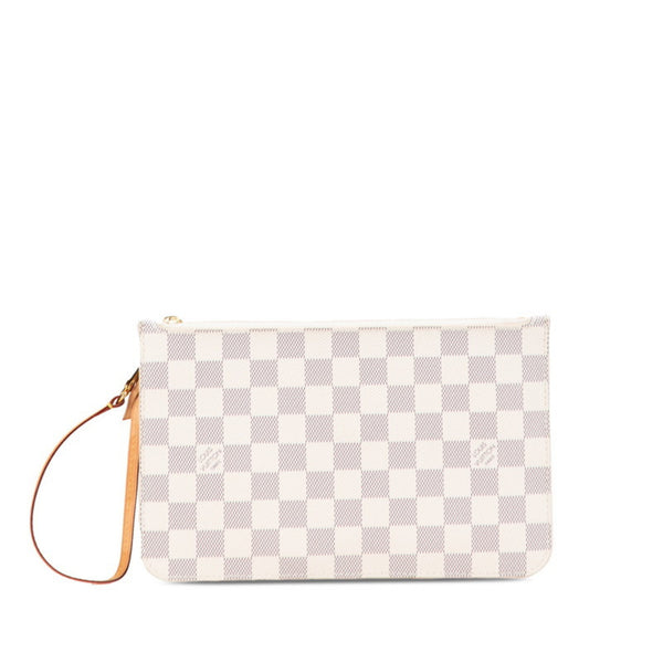 Louis Vuitton Damier Azur Neverfull MM with attached pouch in white leather. Women\'s. LOUIS VUITTON