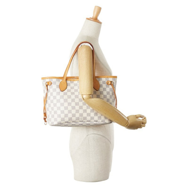 Louis Vuitton Damier Azur Neverfull PM Tote Bag/Shoulder Bag N51110 White Leather Women\'s LOUIS VUITTON