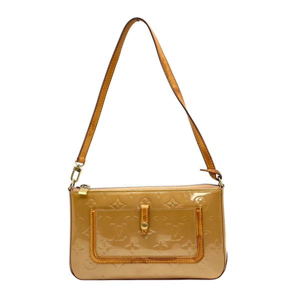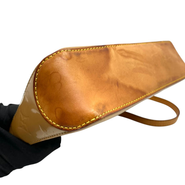 LOUIS VUITTON Monogram Vernis Mallory Square Handbag M91197 Accessory Pouch One-Shoulder Camel Brown Women\'s K4