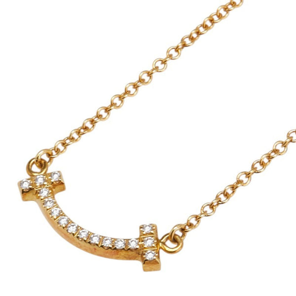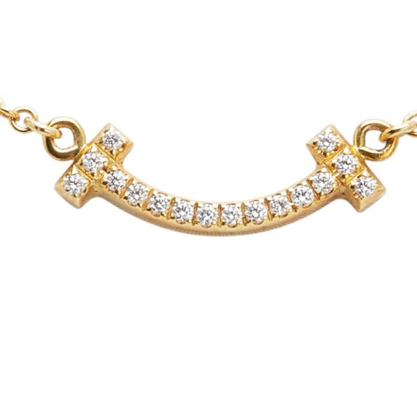 Tiffany & Co. 18K Yellow Gold Diamond T Smile Pendant Necklace for Women.
