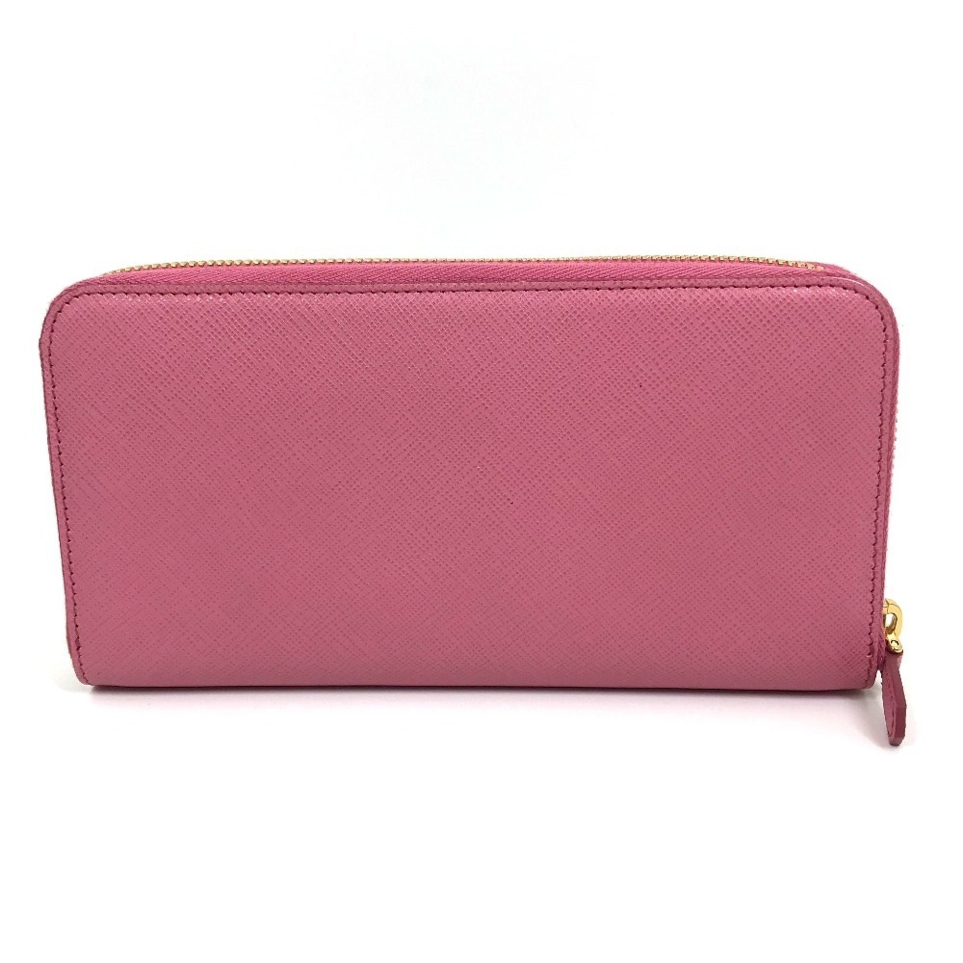PRADA 1ML506 Logo Saffiano Shine Round Zip Long Wallet in Leather, Women\'s, BEGONIA Pink
