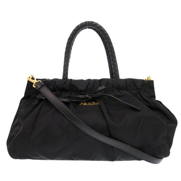 Prada BN1631 TRSSUTO BOW Nylon and Leather NERO Black 2-Way Handbag (0810PRADA)