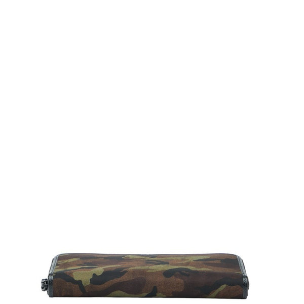Prada Camouflage Round Zip Long Wallet in Khaki Black Nylon and Leather for Men