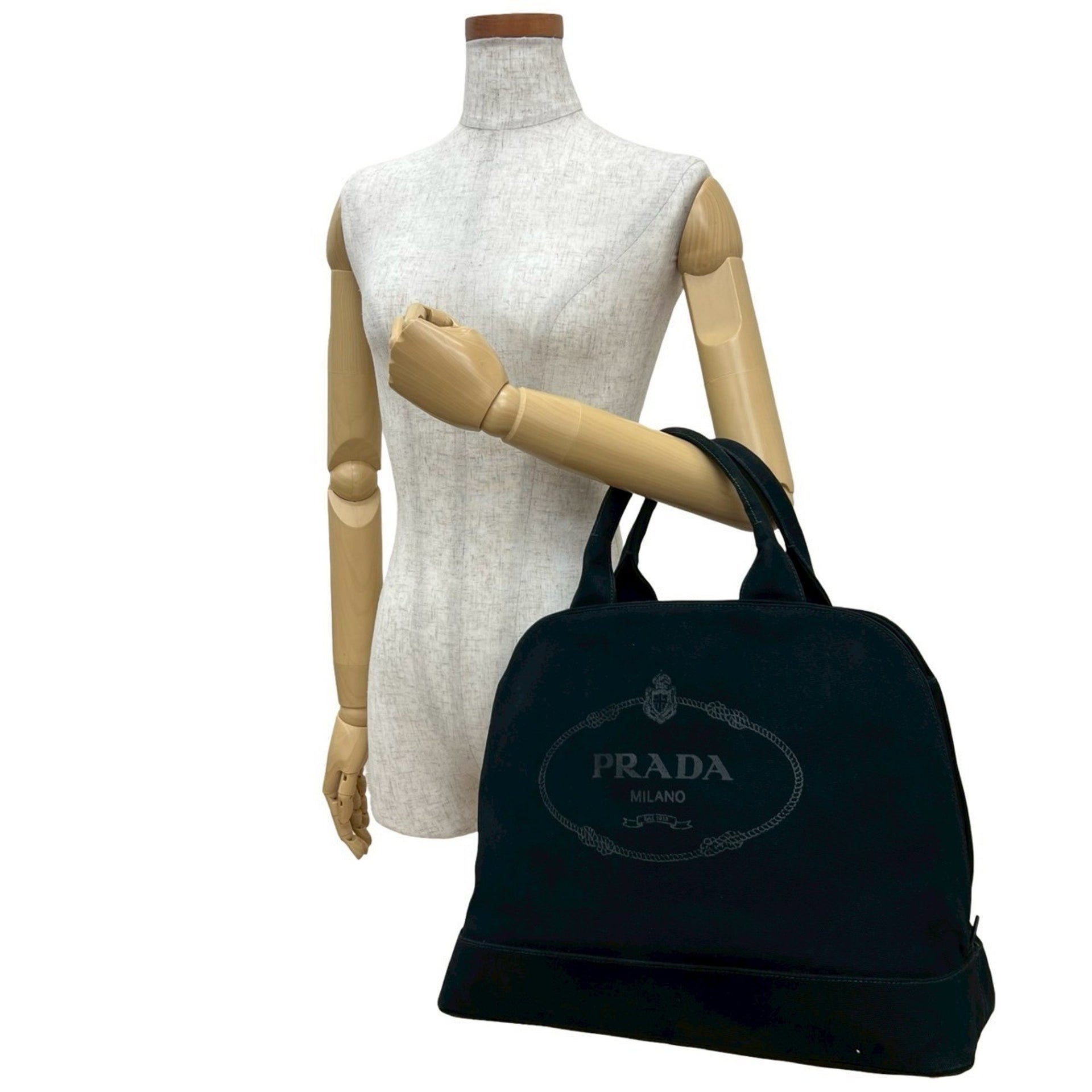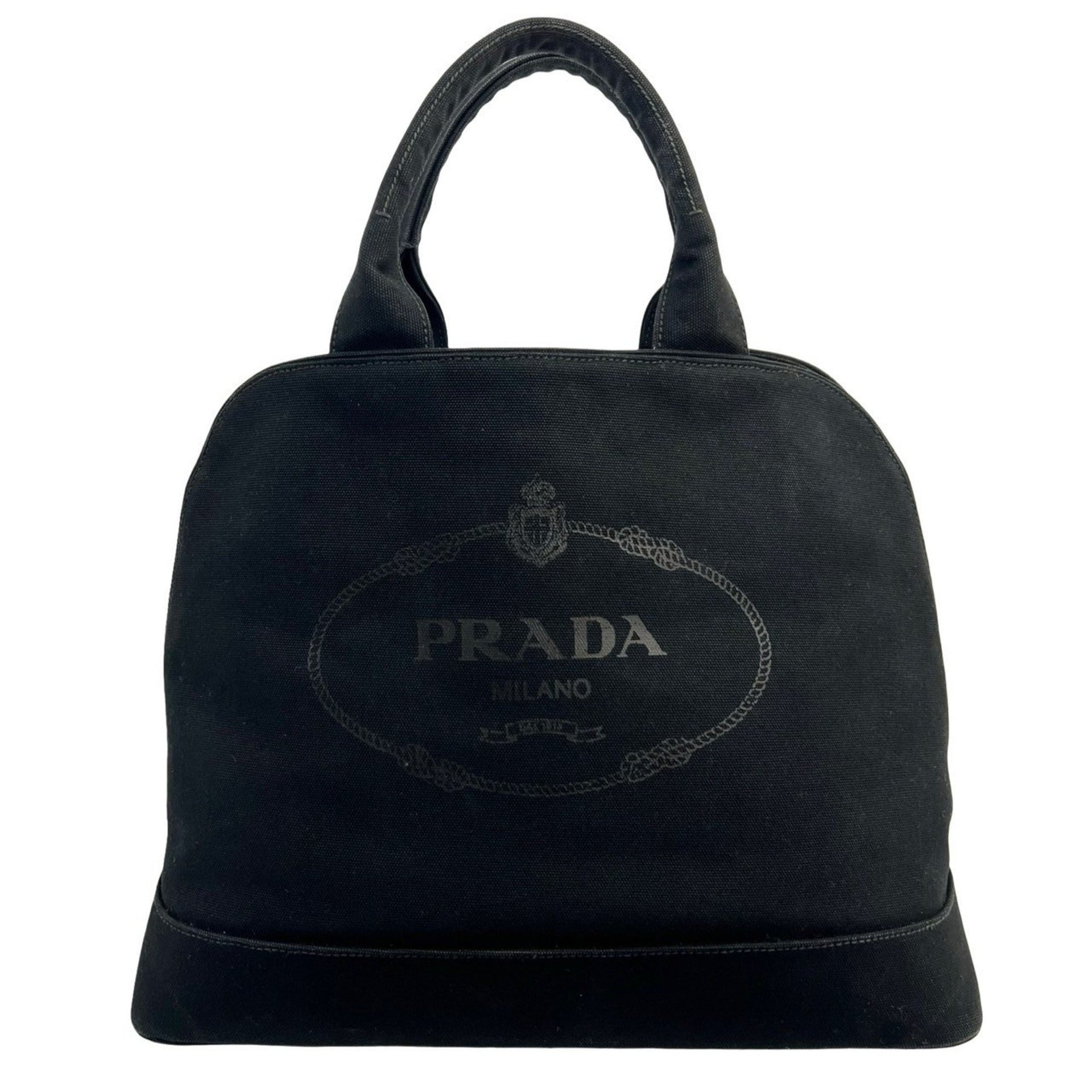 PRADA Canapa Logo Jacquard Canvas Handbag/Tote/Boston Bag in Black (86331) with Card.