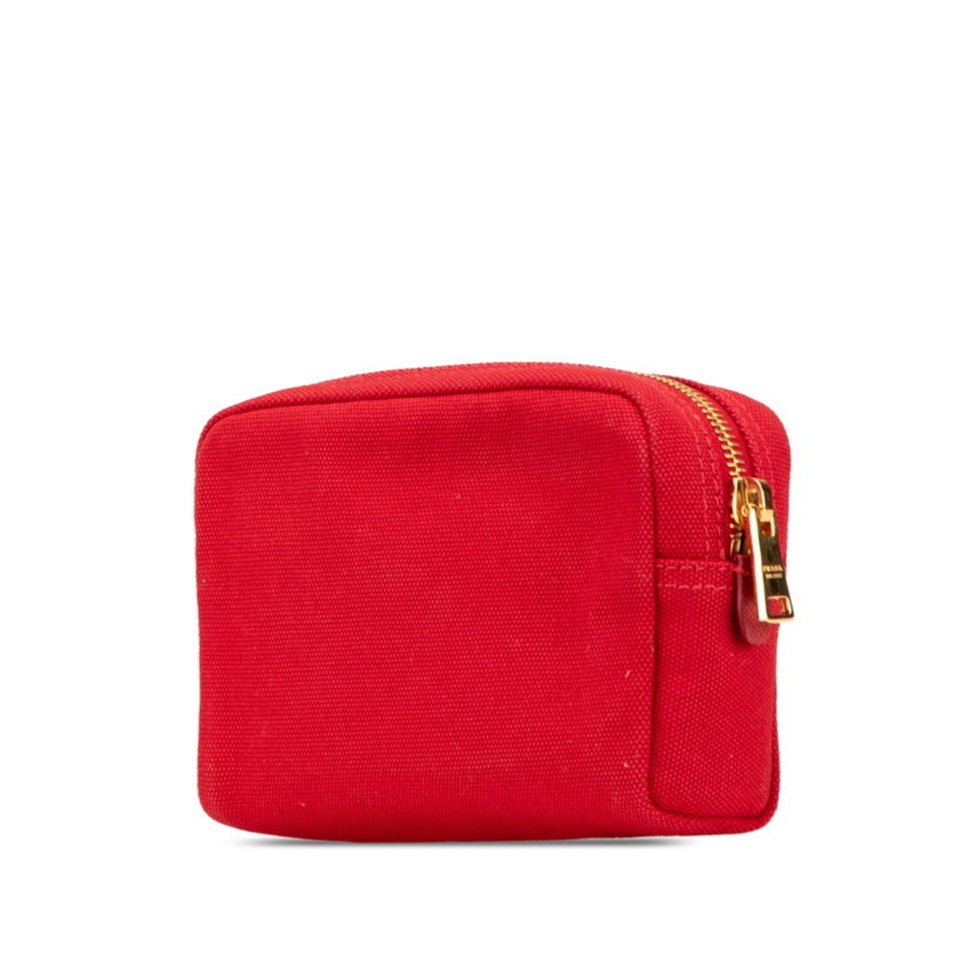 Prada Canapa Pouch 1NA021 Rosso Red Canvas Leather Women\'s PRADA