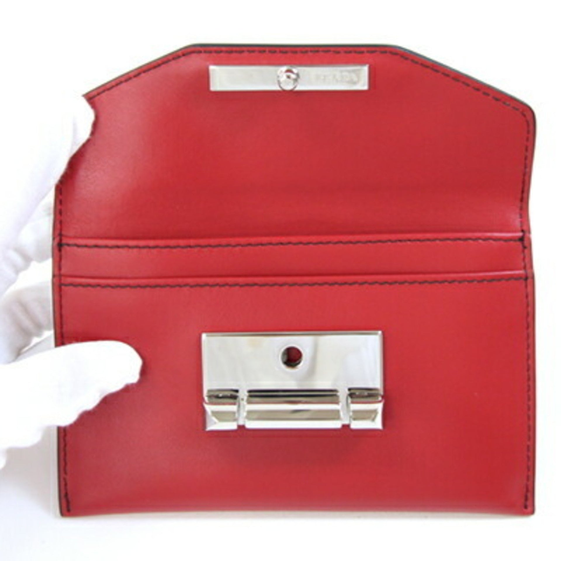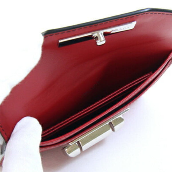 Prada Card Case 1MC004 Red and Black Leather Pass Case, Two-Tone Design, Women\'s, PRADA