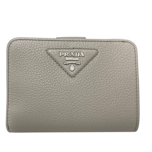 PRADA Compact Wallet 1ML018, Women\'s Leather Bifold Wallet, Greige, L-Shaped Zipper