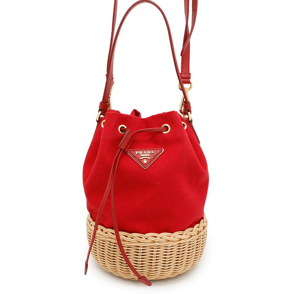 Prada Handbag Drawstring Bucket Bag Canvas Raffia 1BH115 PRADA 2-way