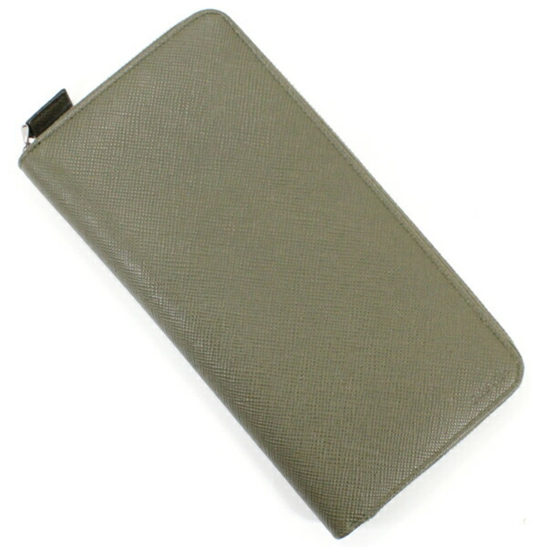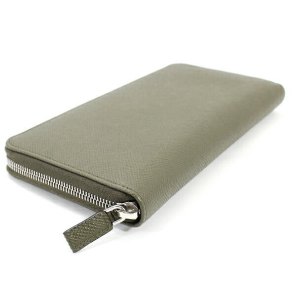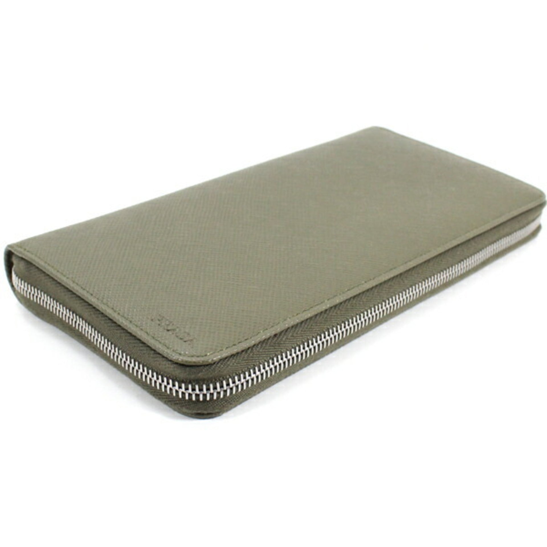Prada Khaki Saffiano Long Wallet with Round Zip Travel Case (2ML220) Men\'s (TK1967)