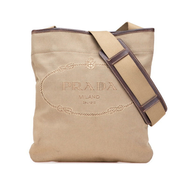 Prada Logo Jacquard Crossbody Shoulder Bag in Beige and Brown Canvas for Women