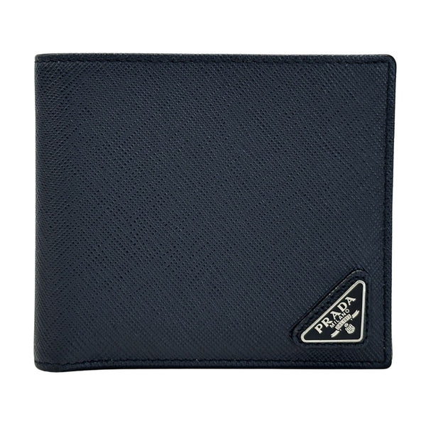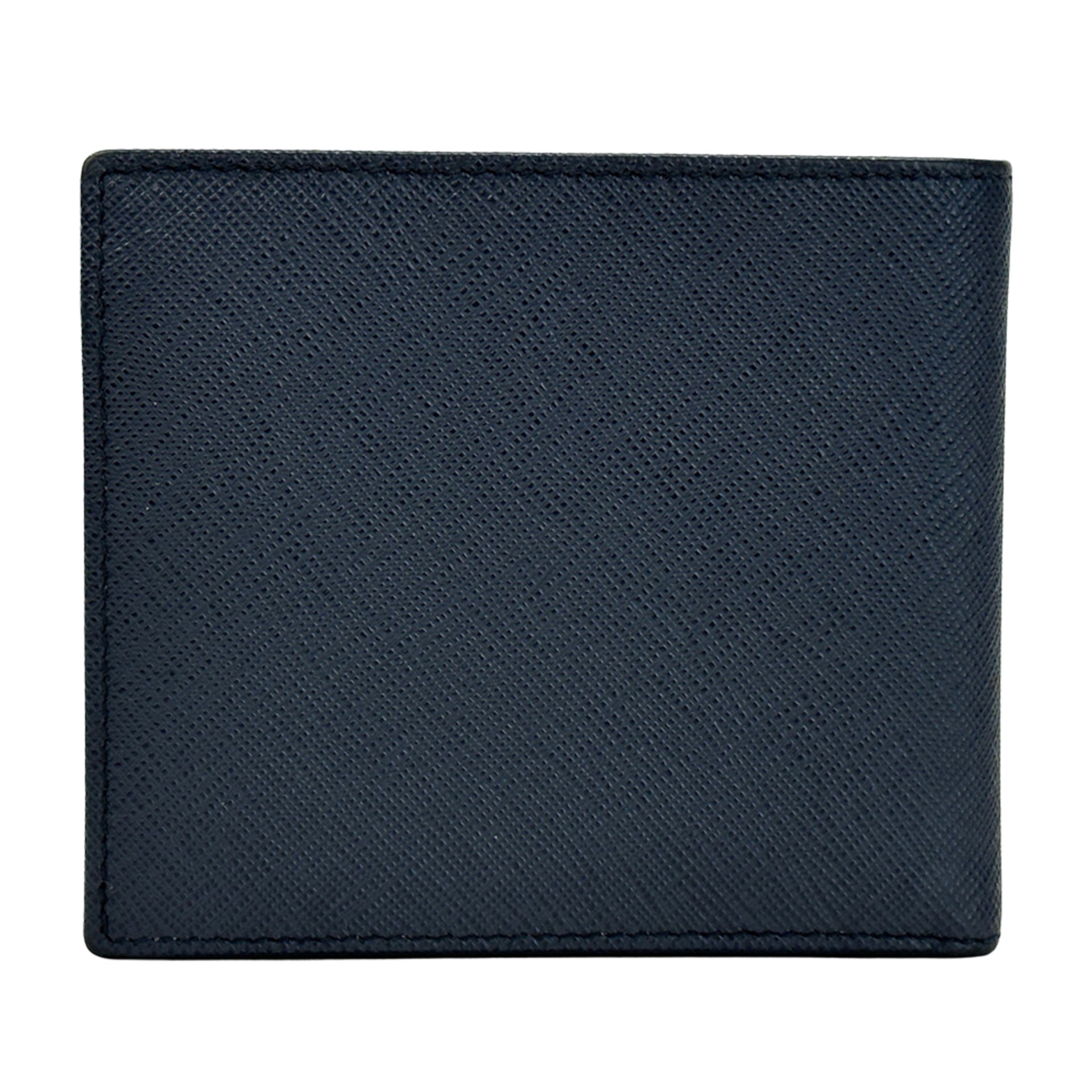 Prada Men\'s Saffiano Navy Bifold Wallet, Compact Mini Wallet