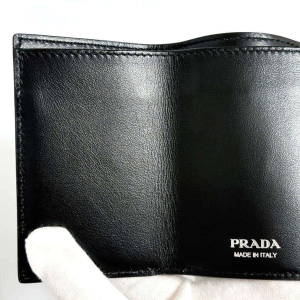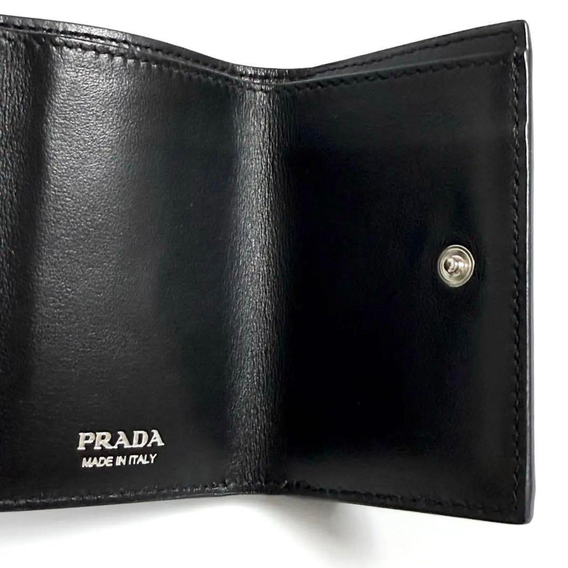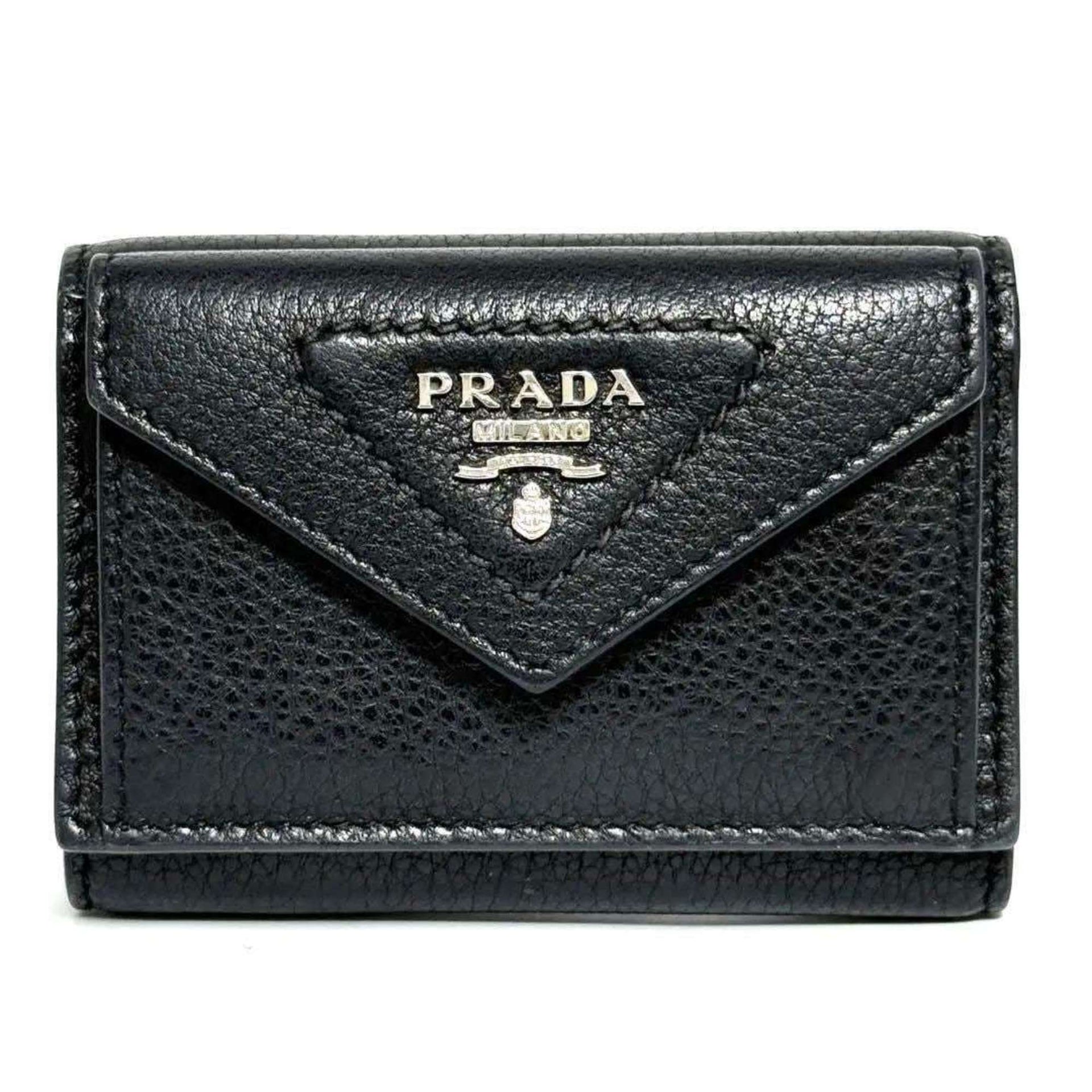 Prada Men\'s Vitello Dino Trifold Wallet, Black, Compact